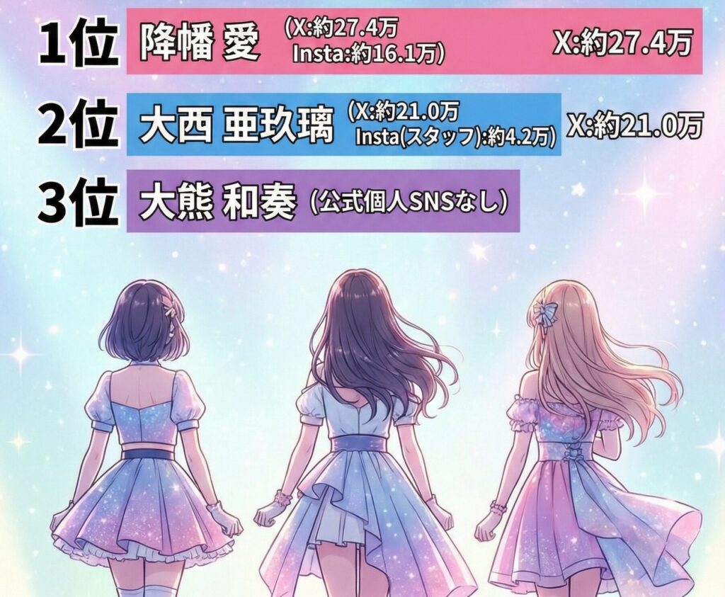 公式SNSがないため数字での比較は難しいですが、現場や配信でのファンの熱狂ぶりを見れば、実質的な人気が凄まじいことは一目瞭然です。