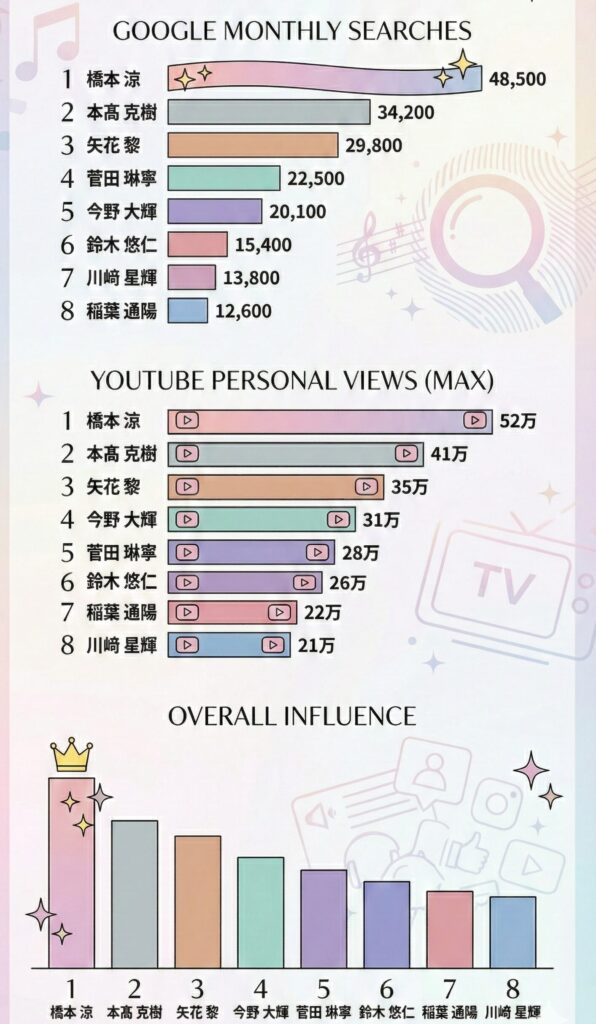 単なる知名度だけでなく、ファンの熱量や一般層への浸透度を反映したリアルな順位を予想しました!