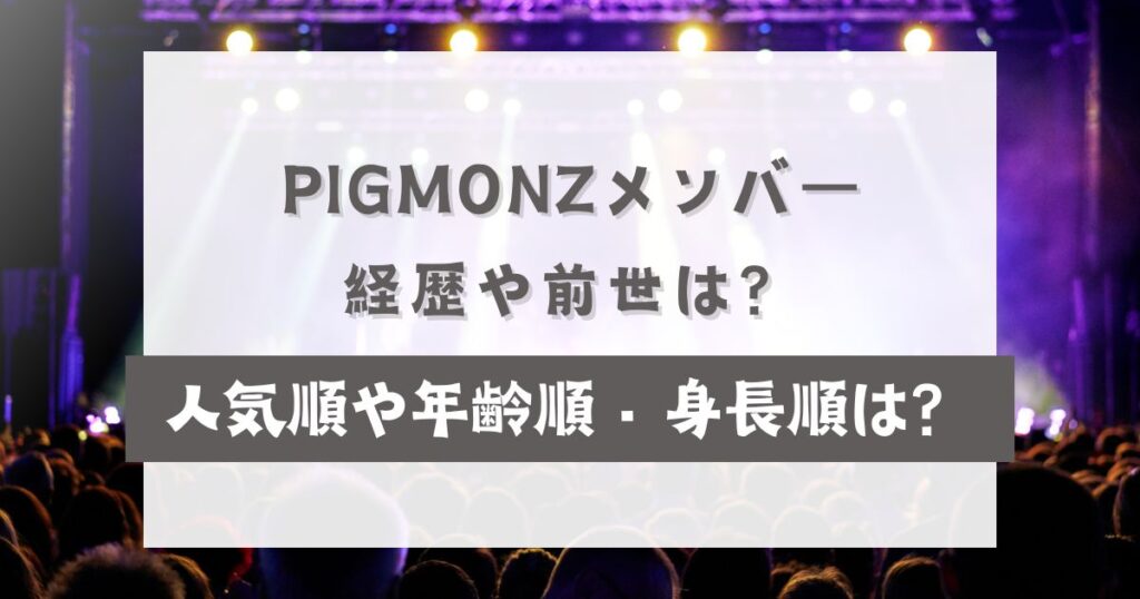 話題の新グループ PIGMONZ(ぴぐもんず) が注目を集める中、「どんな経歴のメンバーがいるの?」「前世(過去の活動歴)は?」といった情報を知りたい人が急増しています。 さらに、推しを見つけるうえで気になるのが、人気順・年齢順・身長順などのプロ... -