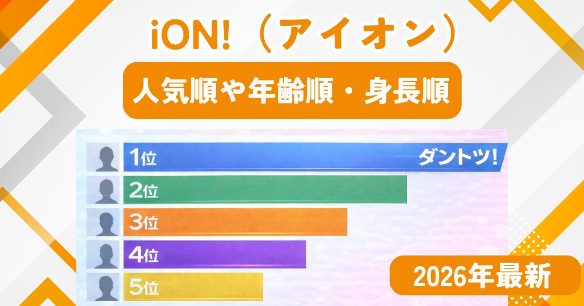 今回は、iON!(アイオン)メンバーの人気順ランキング【2026年最新】として、人気順位や年齢・身長、前世や経歴について整理しました。