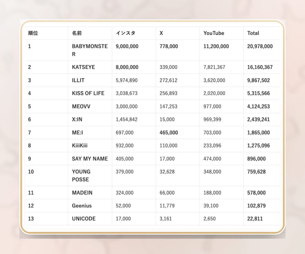 【第5世代ガールズグループ SNS総フォロワー数ランキング(2026年2月版)】