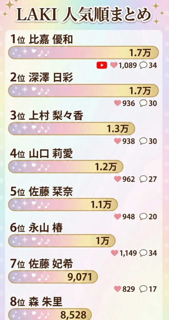 Laki(ラッキーラッキー)メンバー人気順ランキング【最新】