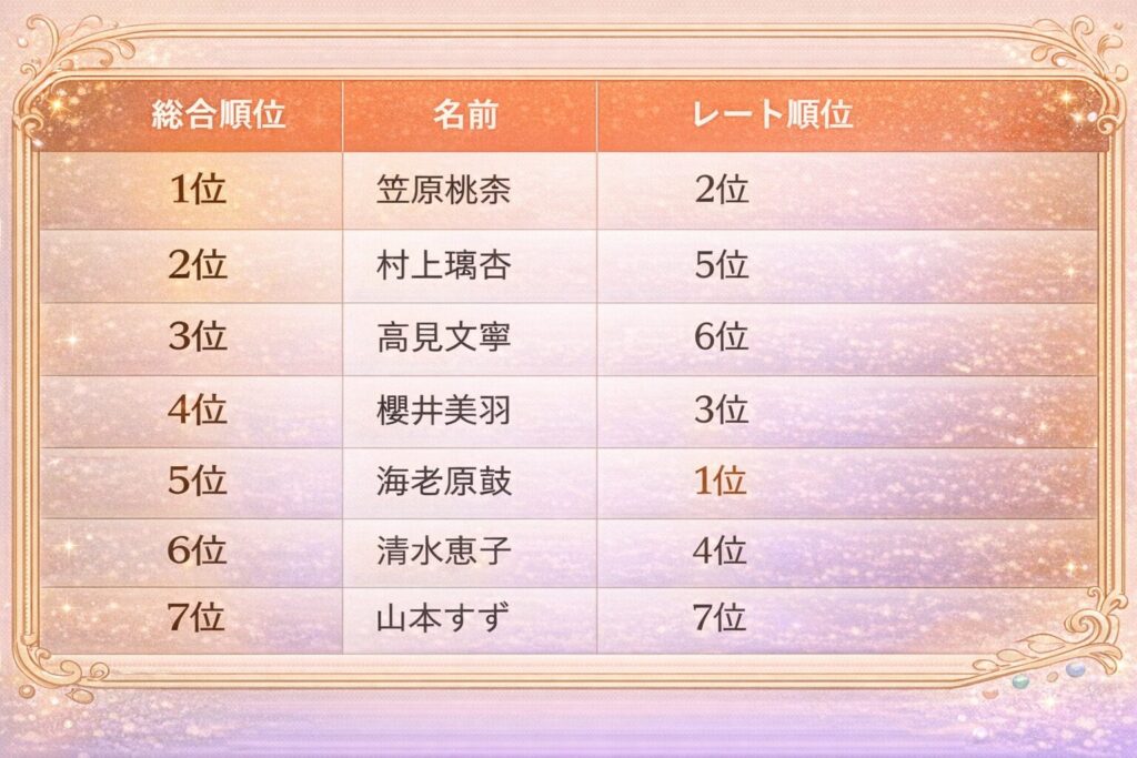 メンバーの魅力は数字だけでは語れませんが、レートや再生数、オーディション順位をあわせて見ると、今の勢いやファンの熱量がかなり見えてきますよね。