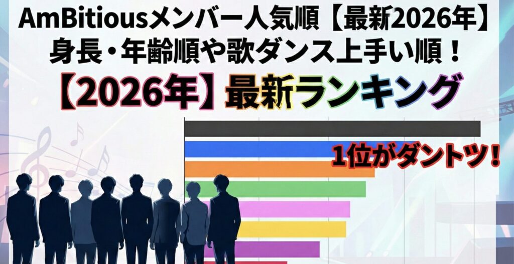 AmBitious(アンビシャス)は、ここ最近の露出増加やパフォーマンス力の高さから、SNSや検索でも「誰が一番人気?」「推しは何位?」と注目度が急上昇中! メンバーそれぞれに個性があり、人気順だけでなく身長・年齢・歌やダンスの実力も気になるところで... -