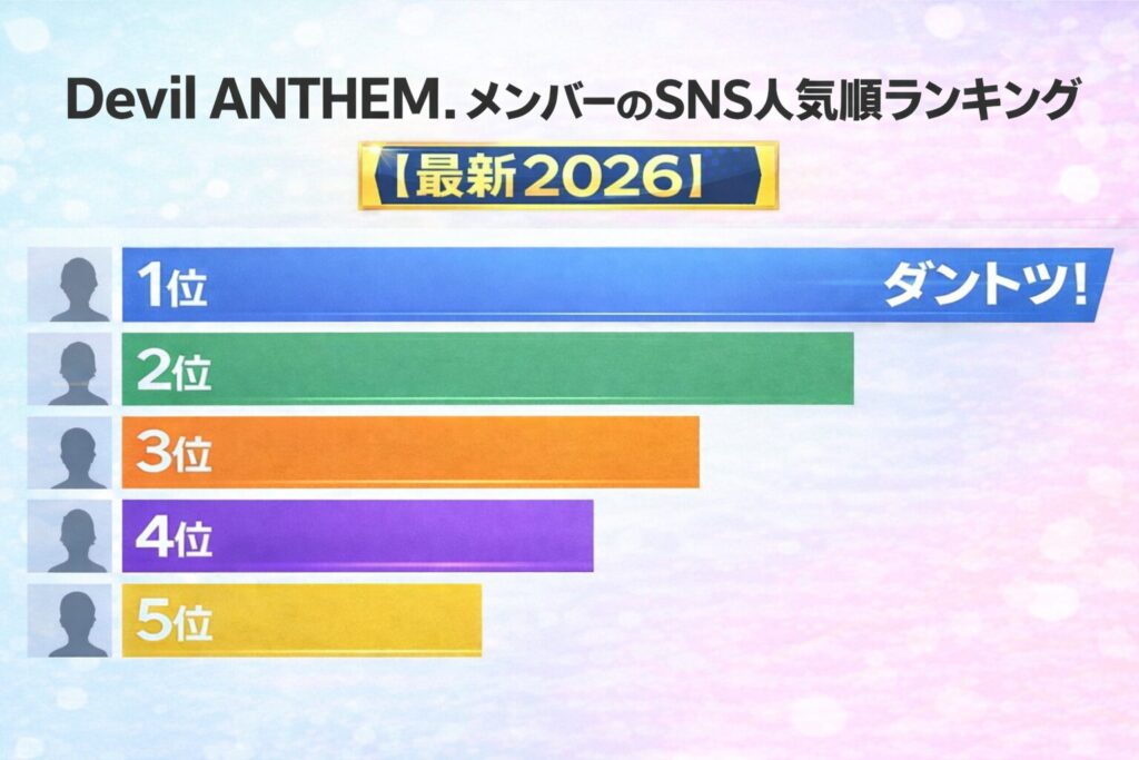 【2025年最新】Devil ANTHEM.(デビルアンセム/デビアン)メンバーの人気順ランキングを徹底解説!「デビアン 人気順」や「知恵袋」での評判、ファンの声を元に最新の序列を決定。Devil ANTHEM.で今一番勢いのあるメンバーは誰?推し活に役立つメンバーのプロフィールや魅力を紹介します。